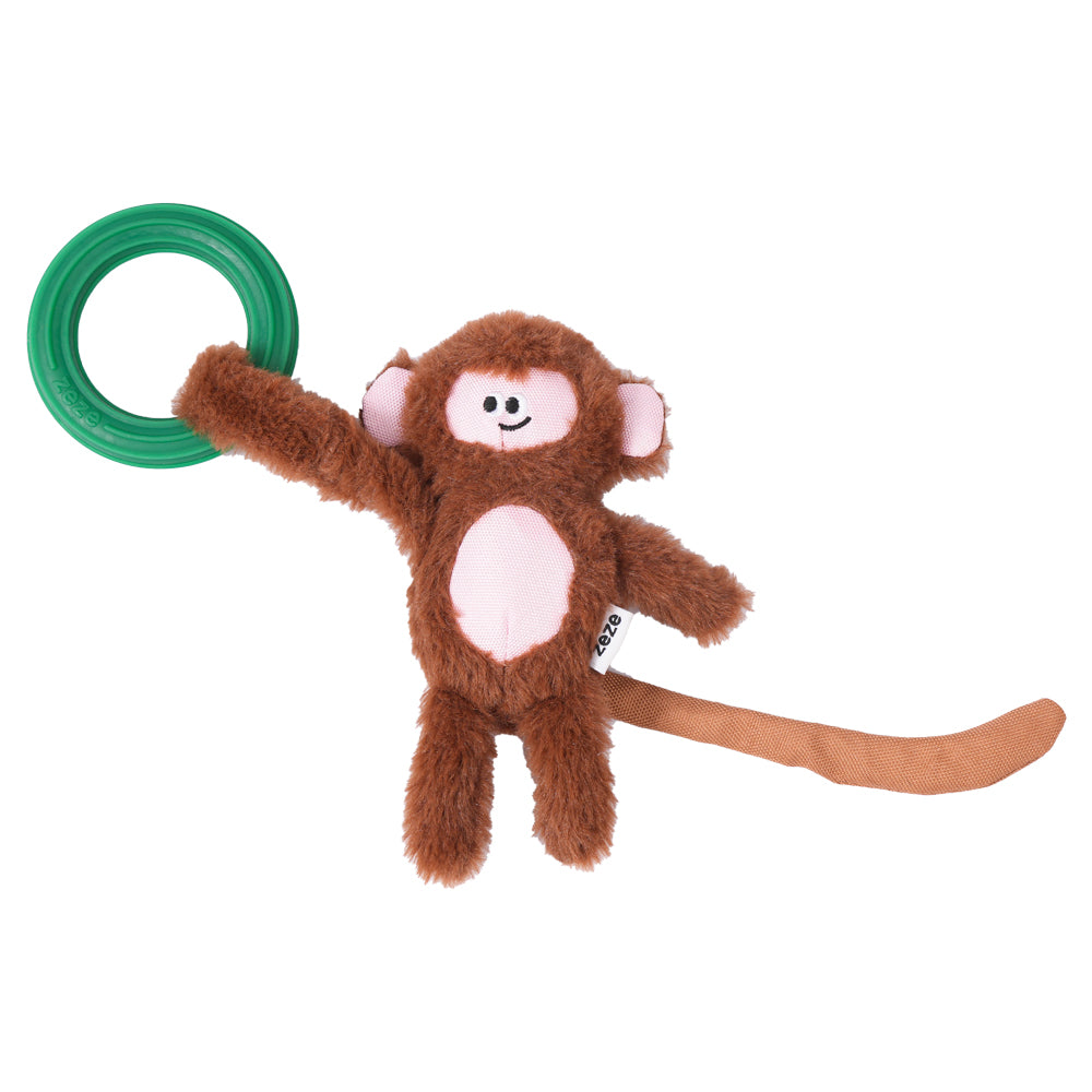O macaquinho é irresistivelmente fofinho e possui um rostinho delicadamente bordado com expressão alegre, que conquista a todos. Seu corpo é macio e fácil de agarrar, perfeito para abraços e mordidinhas gentis. As orelhas, a barriga e o rostinho são feitos de um material texturizado e suave, que oferece uma experiência sensorial única para seu cachorro.
