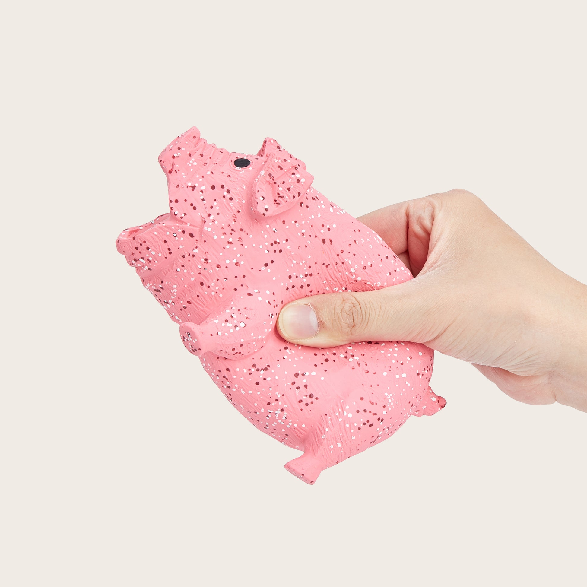 Com um design que imita perfeitamente a textura e os detalhes finos de uma escultura em madeira artesanal, este brinquedo adorável é, na verdade, fabricado em latex resistente e de alta qualidade. Seu corpo rosa é enfeitado com divertidas pintas brancas e vinho, criando um visual alegre e único.