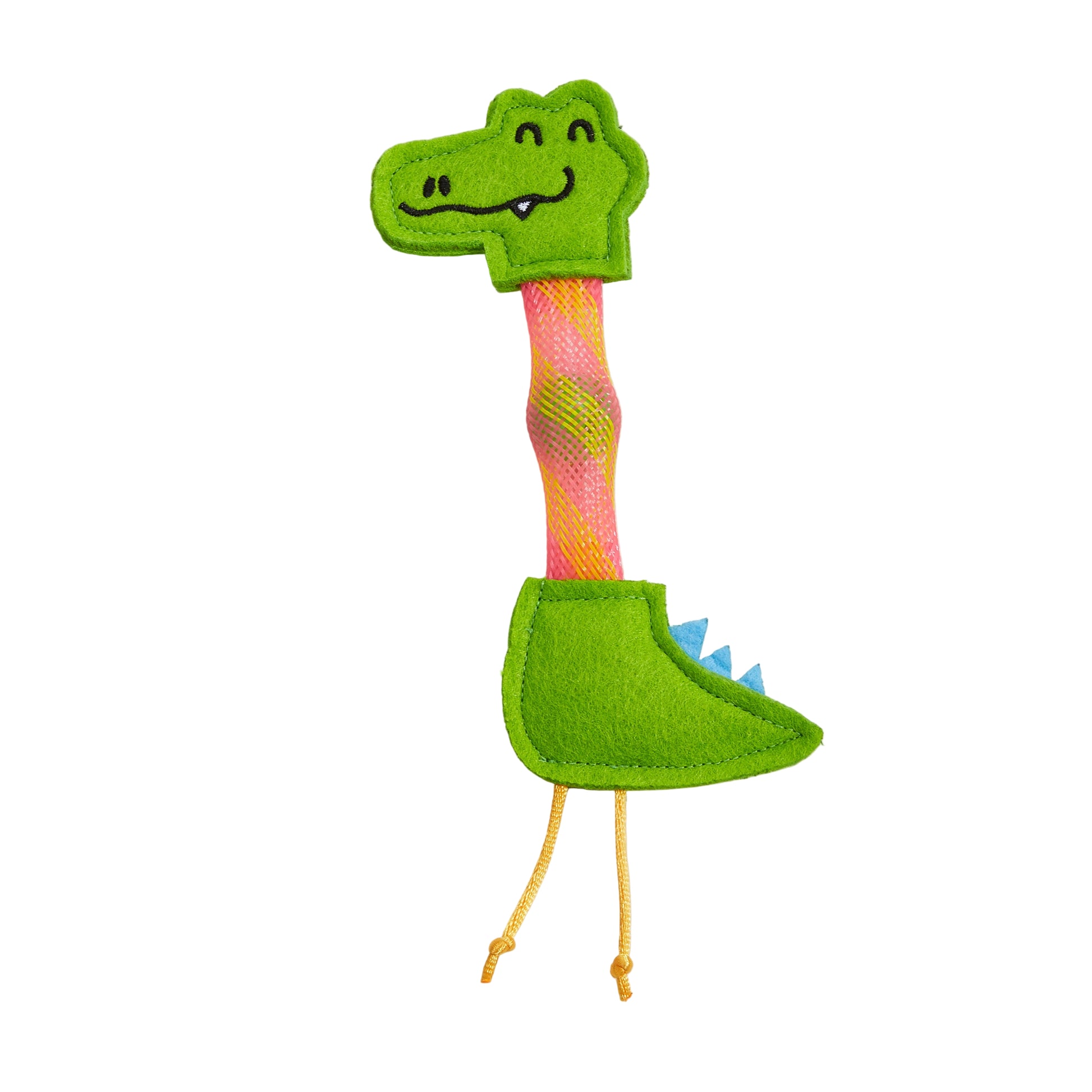 Dois cordões pendurados na parte inferior imitam pezinhos, adicionando um elemento extra para seu gato perseguir e capturar. O corpo é confeccionado em malha trançada resistente, que abriga de forma segura uma bolinha com sininho em seu interior. O som suave e gentil estimula os sentidos do seu gato sem ser muito estridente.