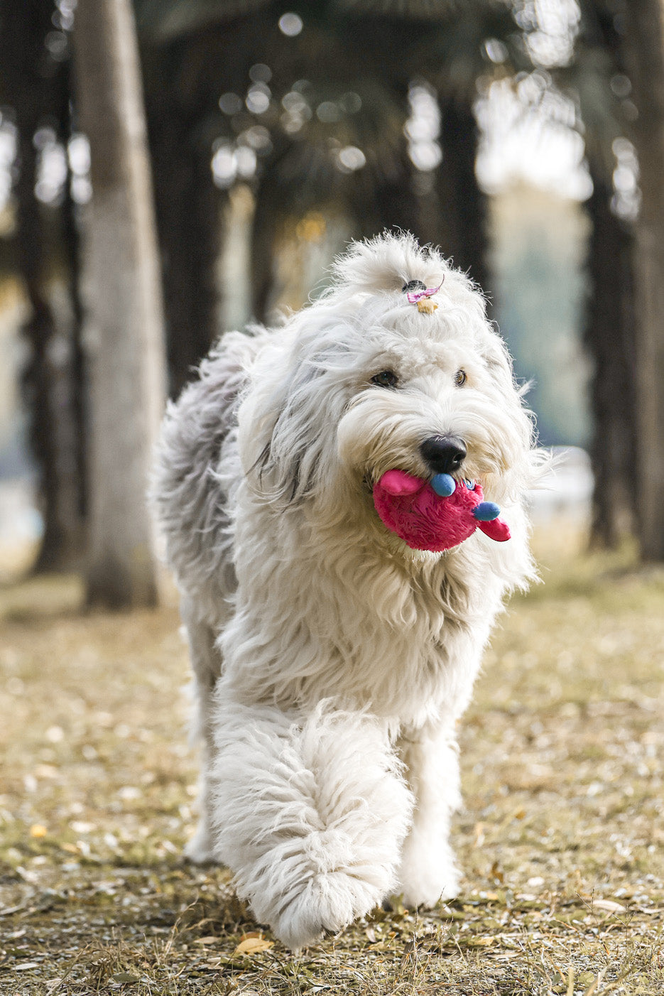 Possui aparência peluda e pelos longos e macios confeccionados com tecidos ecologicamente corretos, conferindo aos cães um toque confortável.