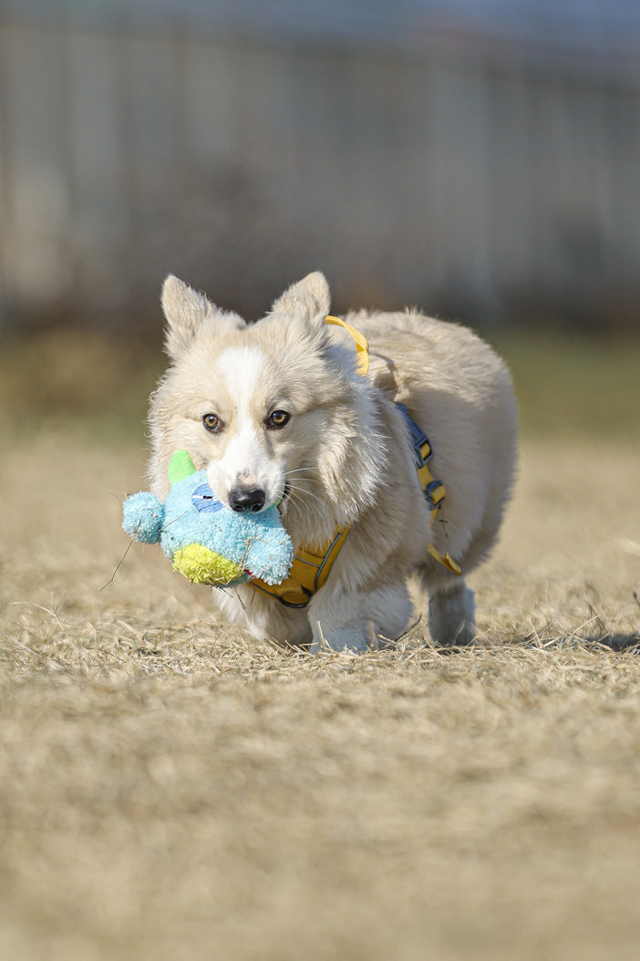 Possui aparência peluda e pelos longos e macios confeccionados com tecidos ecologicamente corretos, conferindo aos cães um toque confortável.