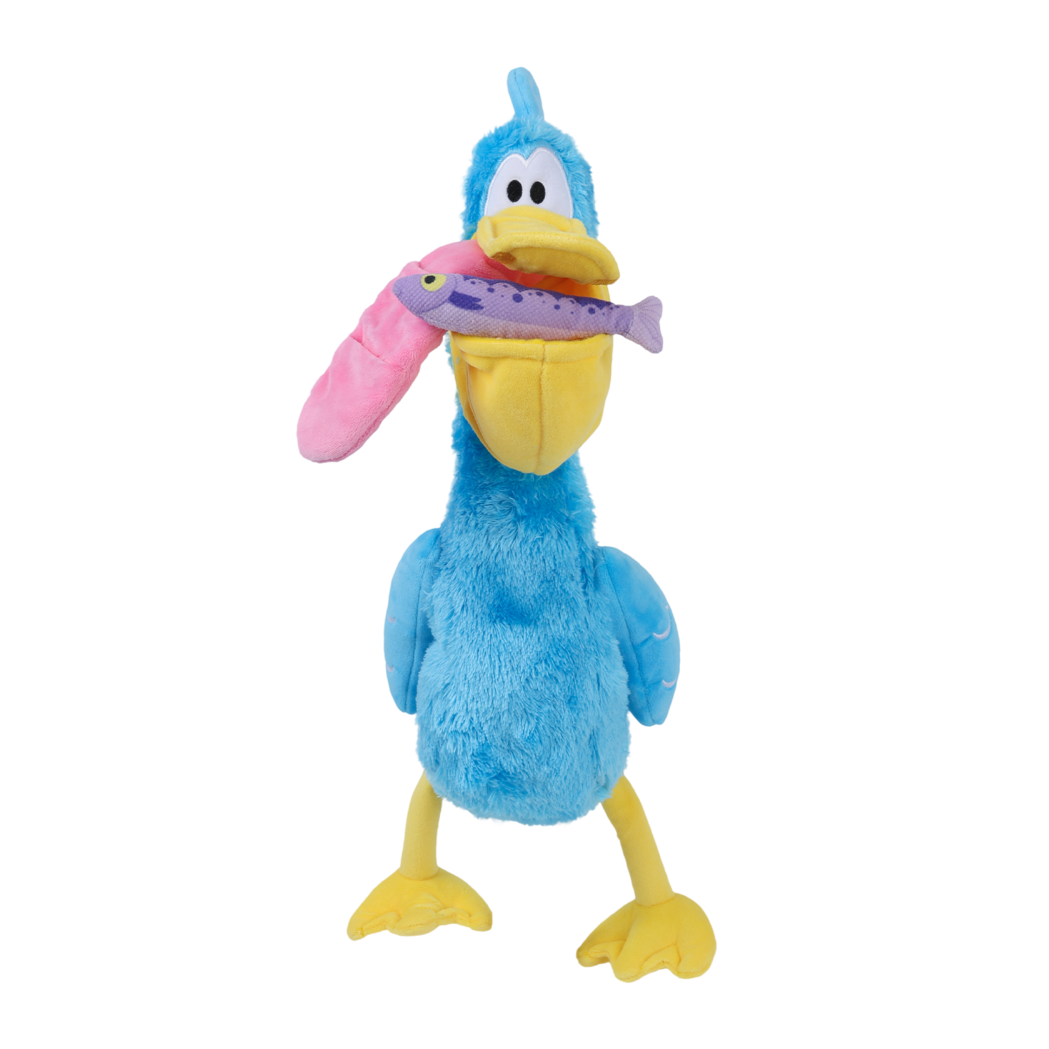 Seu bico icônico é um bolso enorme, e na língua há três bolsinhos extras, perfeitos para esconder petiscos e brincar de procurar.